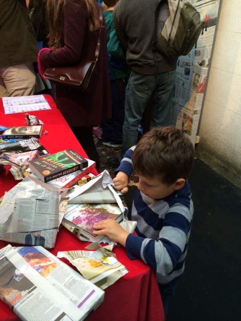 Isaac opening a surprise book during Culture Night