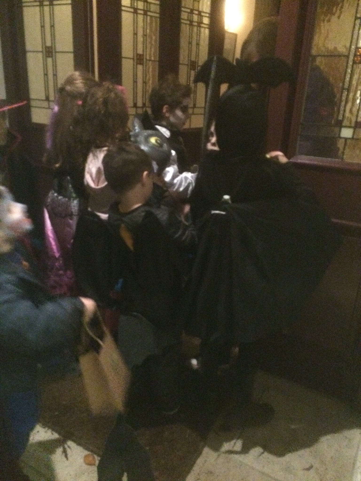 -the grownups seemed to dress up in costume too here. When we arrived at our neighbors’ they were both decked out in full costume and I felt very underdressed (or underdressed-up)