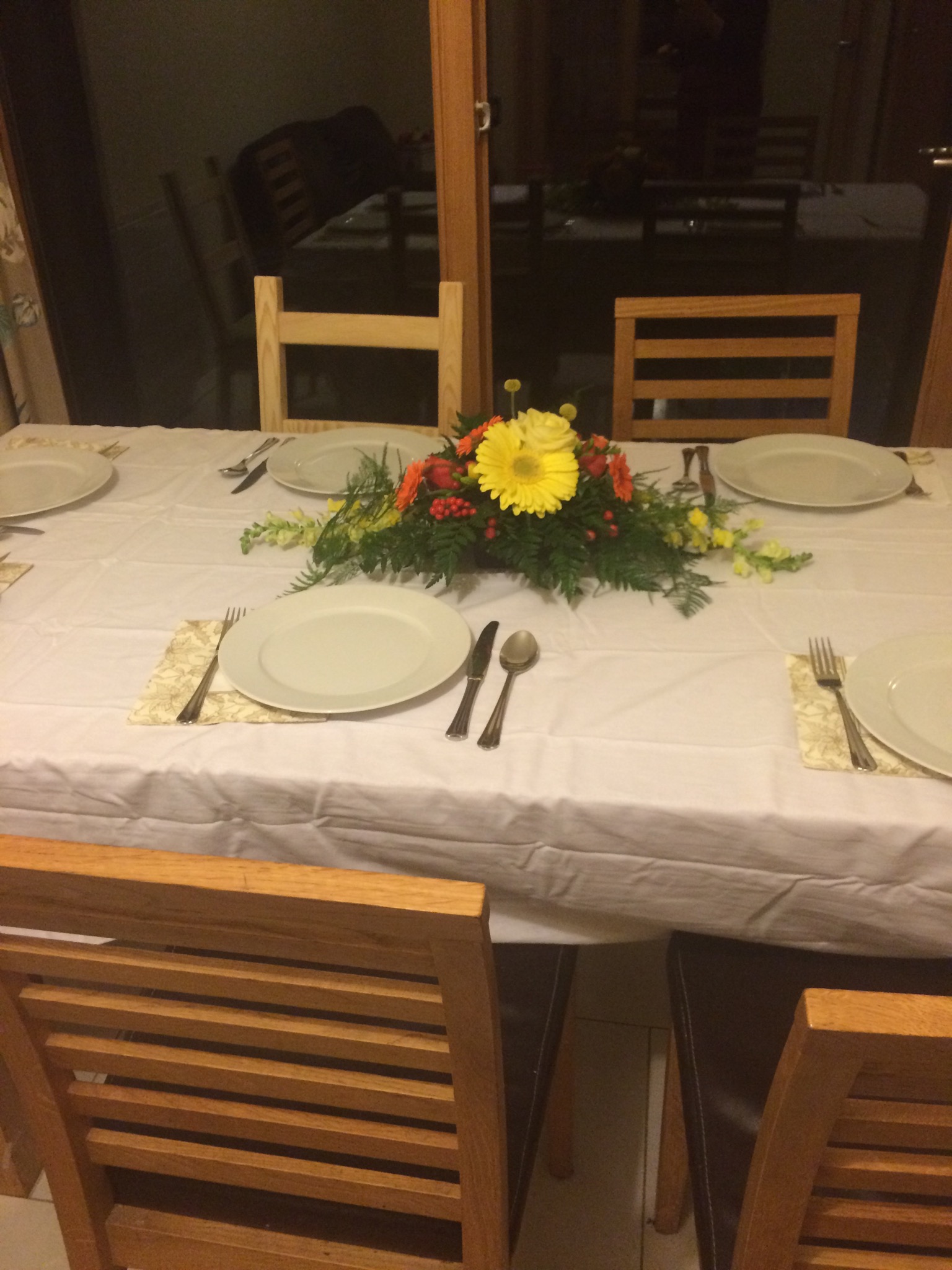 But we decided to make a thanksgiving meal anyway. We invited our neighbors who had lived in the states for about 10 years, and another family that lives near us too. Even though none of the guests were American (the men were both Irish and one woman was Spanish and the other Japanese), they were all excited to join our celebration. It was nice to have an excuse to prepare a big feast and to invite over guests and share some of our traditions.