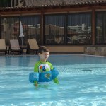 The hotel we stayed at, and so many of the facilities around, were super family friendly! As we were first checking into our hotel and getting our welcome drink (champagne for us, apple juice for the kids), we noticed there was a play area right in the lobby, which quickly became one of the boys’ favorite spots in the hotel, and also an arcade room that Isaac loved (he would just pretend play the driving video game, steering the wheel and pretending to drive). There was also a little play area right in the dining room, so at breakfast once the kids finished eating, they could play while Jeff and I finished our food and coffee in a somewhat leisurely manner 🙂 Throughout the day, they had kid activities and at night a “mini disco” but we didn’t really partake in any of those, though it was nice to know they were available.
