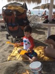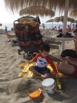 A few of the days, we ventured on little outings. We surprised Isaac with a Hanukkah gift of a submarine ride. It was so fun to have a little special “date” with him (kids under 2 weren’t allowed on the sub, so Jeff stayed back with Rafi), and he’s been interested in submarines for awhile, so it was cool to have the chance to go on one together. Another day, we went to a waterpark near our hotel. It was Isaac’s first time going down little water slides, and we weren’t sure whether he would be into it or not, but he loved it! And another day, we went to the beach. The water was a little chilly, so we didn’t swim, but had a great time building sand castles. We also observed the very “European” nature of the beach, with some people going for the “clothing optional” choice 🙂