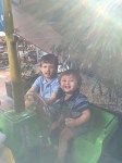 - Isaac had the idea to pose for a picture in these little chairs