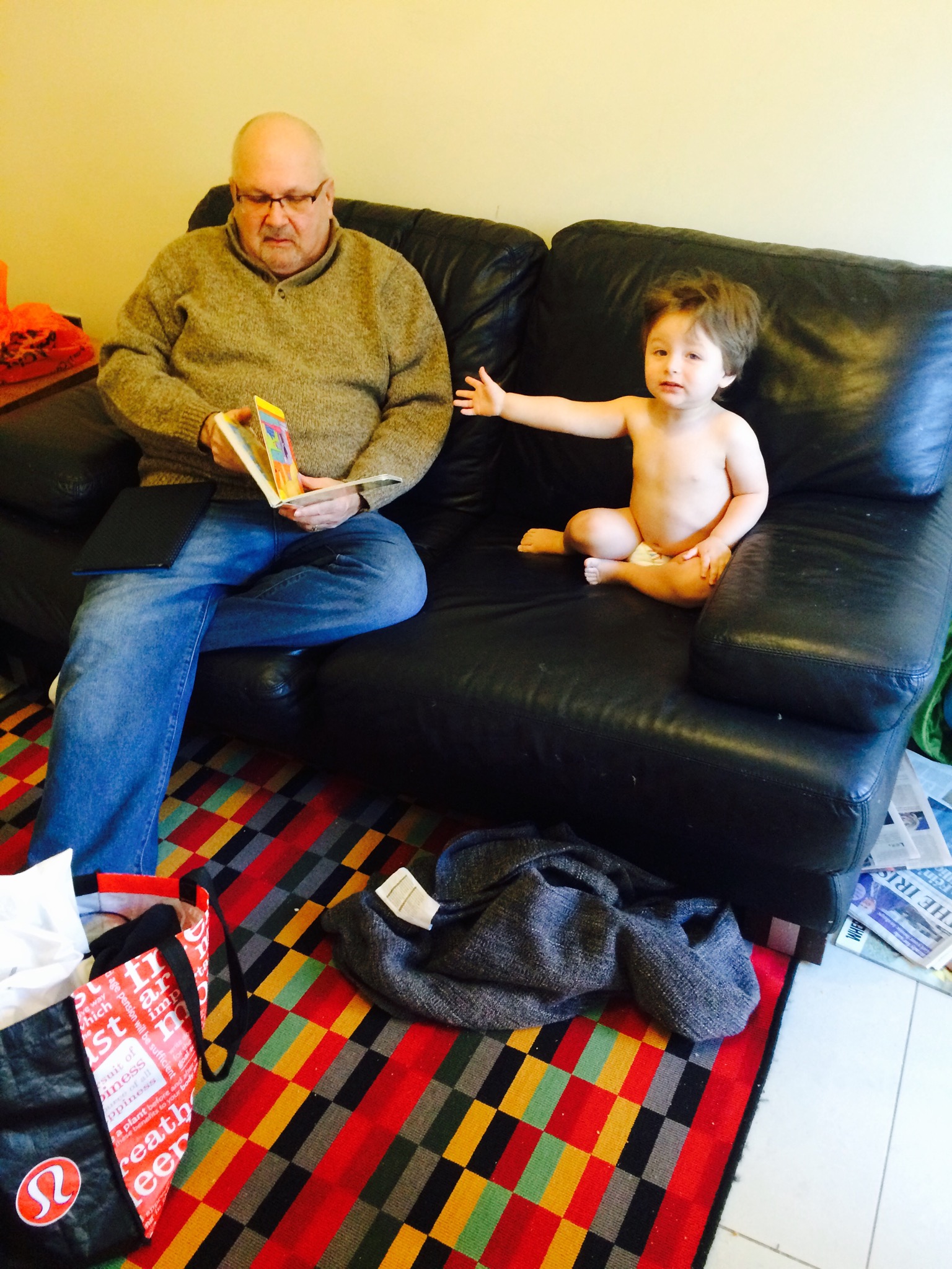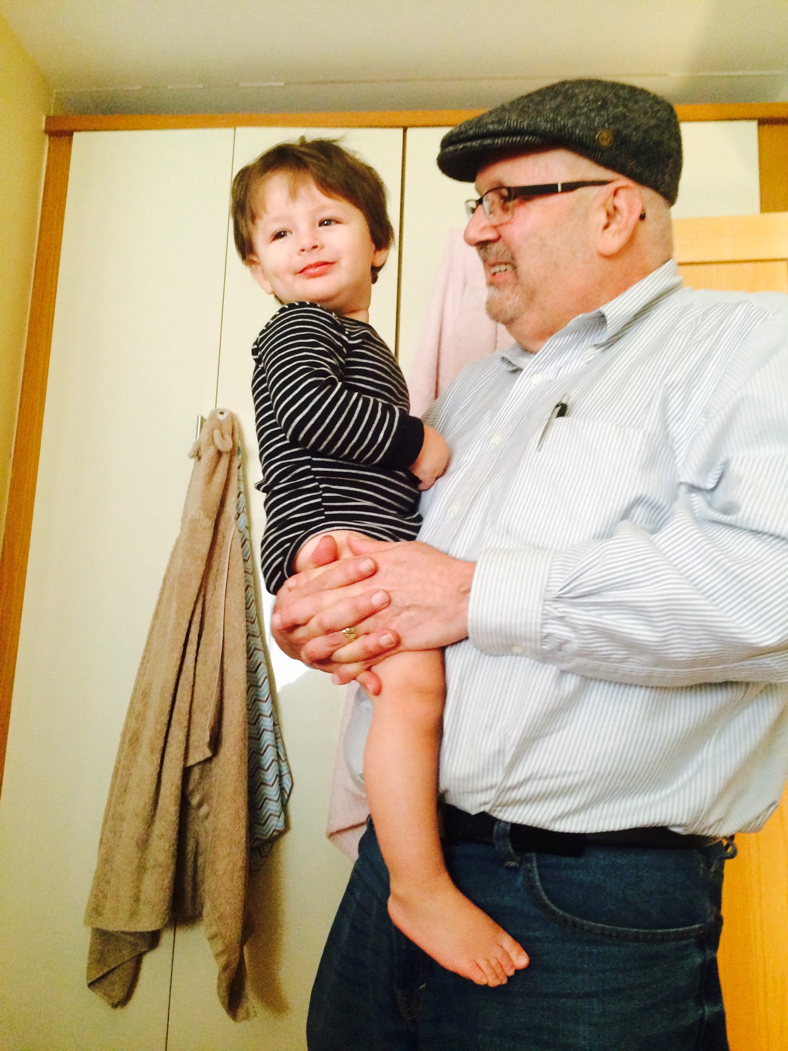 It was really nice to have time to just do “normal” things together. My parents brought a ton of toys and books to spoil the boys with and they had a blast playing together 🙂 Isaac got to have a few movie nights (at home) with grandma and grandpa, which he loved. And we even made a trip to the National Aquatic Center which is an awesome swimming complex. The Ireland Olympic team trains there and then there’s a separate huge pool with water slides, a lazy river and wave pool, and a pirate ship with slides for younger kids. Interestingly, most of the pools in Ireland require you to wear swim hats, which you can see pictured below. We all enjoyed it, and Rafi especially loved the little rides in the lobby.