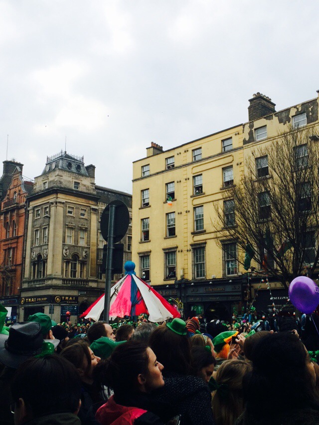 We decided to check out the big parade in town, which half a million people turn out to watch as it winds its way through the streets of Dublin. My parents were really excited to be here for the celebrations too, but on the morning of Patty’s day, my dad woke up feeling ill and wasn’t able to come to the parade with us. 😦 So this was a big bummer, but he watched it on tv and probably had better views of it than we did! Still, we wished he could have been there with us.