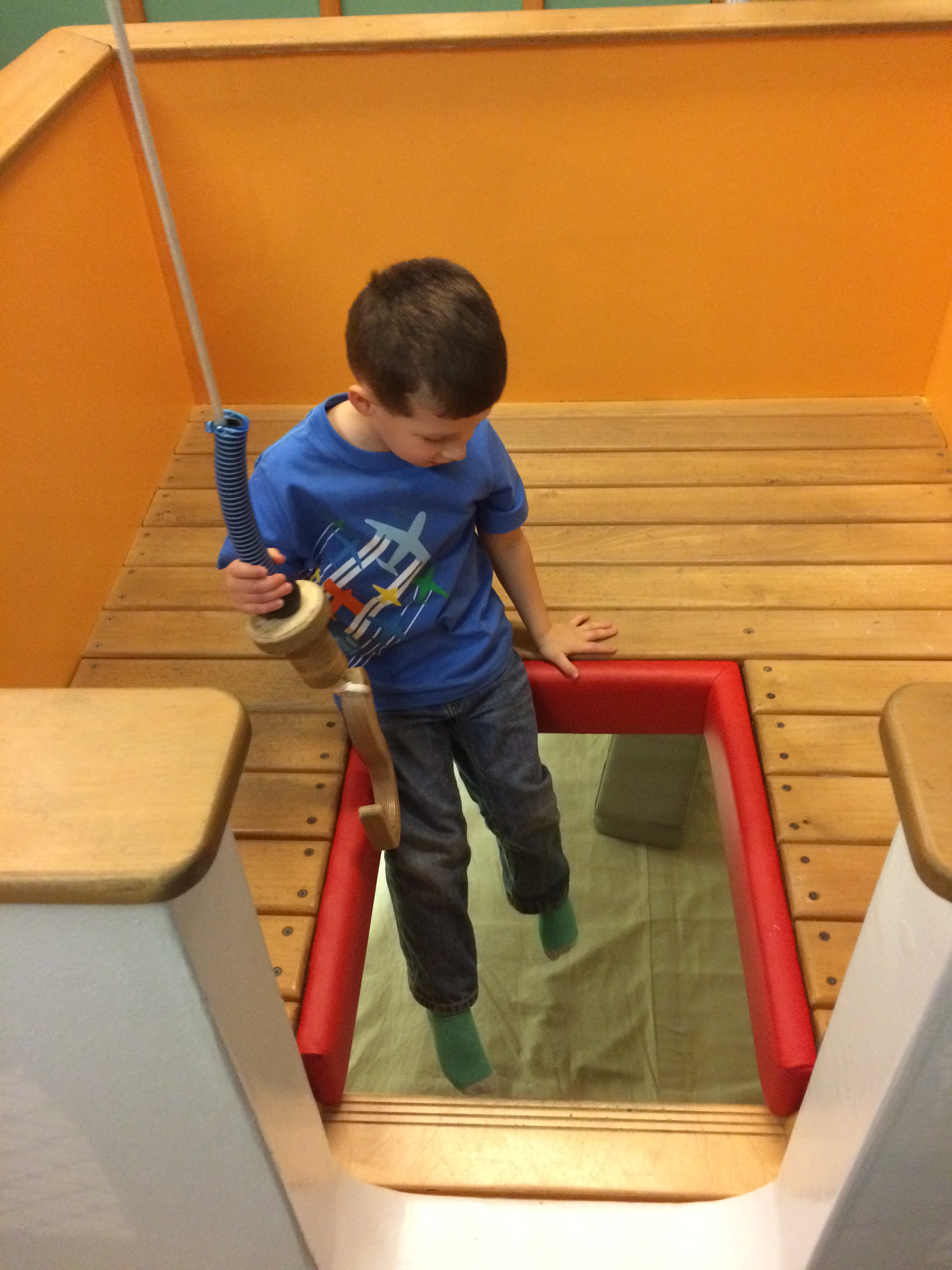 Isaac going below deck