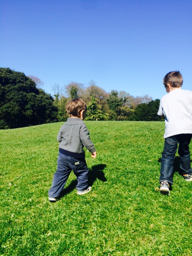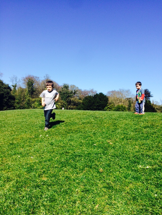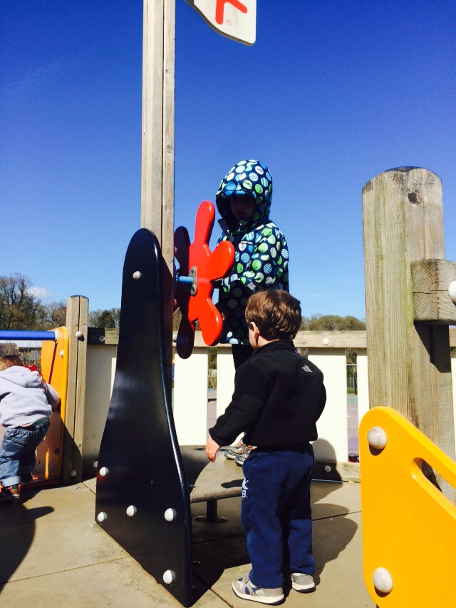 And last weekend we visited a cool place called Ardgillan Castle, about a half hour drive away. It’s a beautiful house with large grassy lawns and gardens overlooking the sea. We walked around the grounds and then discovered the awesome playground. It had a ton of great new equipment that both boys could enjoy — boats, castles, swings, and a zipline which Isaac loved (after a bit of convincing to try it). We definitely want to go back to this playground again!