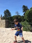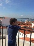 Once we finally reached the castle, we were ready for a snack and the boys were ready to run around and stretch their legs. So we bought some delicious juicy strawberries just outside the castle gate and enjoyed them in the courtyard of the castle. There were once again incredible views across the whole city. We wandered the grounds of the castle and even saw a bunch of peacocks that live there! We learned a bit about the history — that it was a Moorish castle used to defend against the Christians (until they finally took over in the 12th century). A palace was built that housed the monarchy for many years, and the area around the castle, in general, was where wealthy people of the city lived. Today, what remains of the castle is pretty much the outer walls and ramparts, which were fun to climb and walk along.