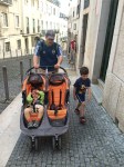 - Jeff pushing the double stroller up the steep streets