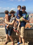 Our hotel, Hotel Santa Justa, was located in an ideal spot for exploring the city. It was right off the main tourist thoroughfare and just a block away from the famous Santa Justa Elevador, which is an ornately designed wrought-iron elevator, more than 100 years old, that can transport people from the lower neighborhood (Baixa) of Lisbon to the upper neighborhood (Bairro Alto). We were also very close to where the trolleys picked up to take people to the castle or to the neighborhood of Belem (more about these later!) The hotel, which was a nicely designed boutique hotel, was probably not the best choice for us, as the four of us were crammed into a pretty small room with lots of potential things for the boys to break like cool lamps and light fixtures and an espresso machine (it would have been a perfect choice for a couple to stay in, but with two rambunctious boys…not so much). 🙂 But, regardless, the staff were very accommodating and friendly, and the amazing location made it worth it, as we could go for an outing in the morning, come back and rest a bit, and then go back out again in the late afternoon for exploring and dinner.