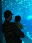 We had mostly sunny days during our time in Lisbon, but on one of the days that it rained we decided to check out the aquarium, the Oceanario de Lisboa. It’s known as one of Europe’s finest aquariums and one of the largest in the world, and is definitely one of the top family-oriented attractions in Lisbon. I had heard it compared to the Monterey Aquarium in California or the Baltimore Aquarium (two of the best in the US), so I had high expectations. We waited almost an hour in line to get in, and while there were definitely some really cool fish and sharks, I have to say I was a little let down compared to how amazing I thought it would be. Still, it was a fun few hours out and a nice experience for the boys. And we got to see a different part of Lisbon and find our way there on the subway system, which was an adventure. Where the aquarium is located is actually in an area called Parque das Nacoes (park of nations) built for the 1998 World Expo, so it includes a lot of more modern looking sculptures and fountains, as well as a long elevated gondola type ride (which we didn’t end up riding because we were all tired) which looked cool.