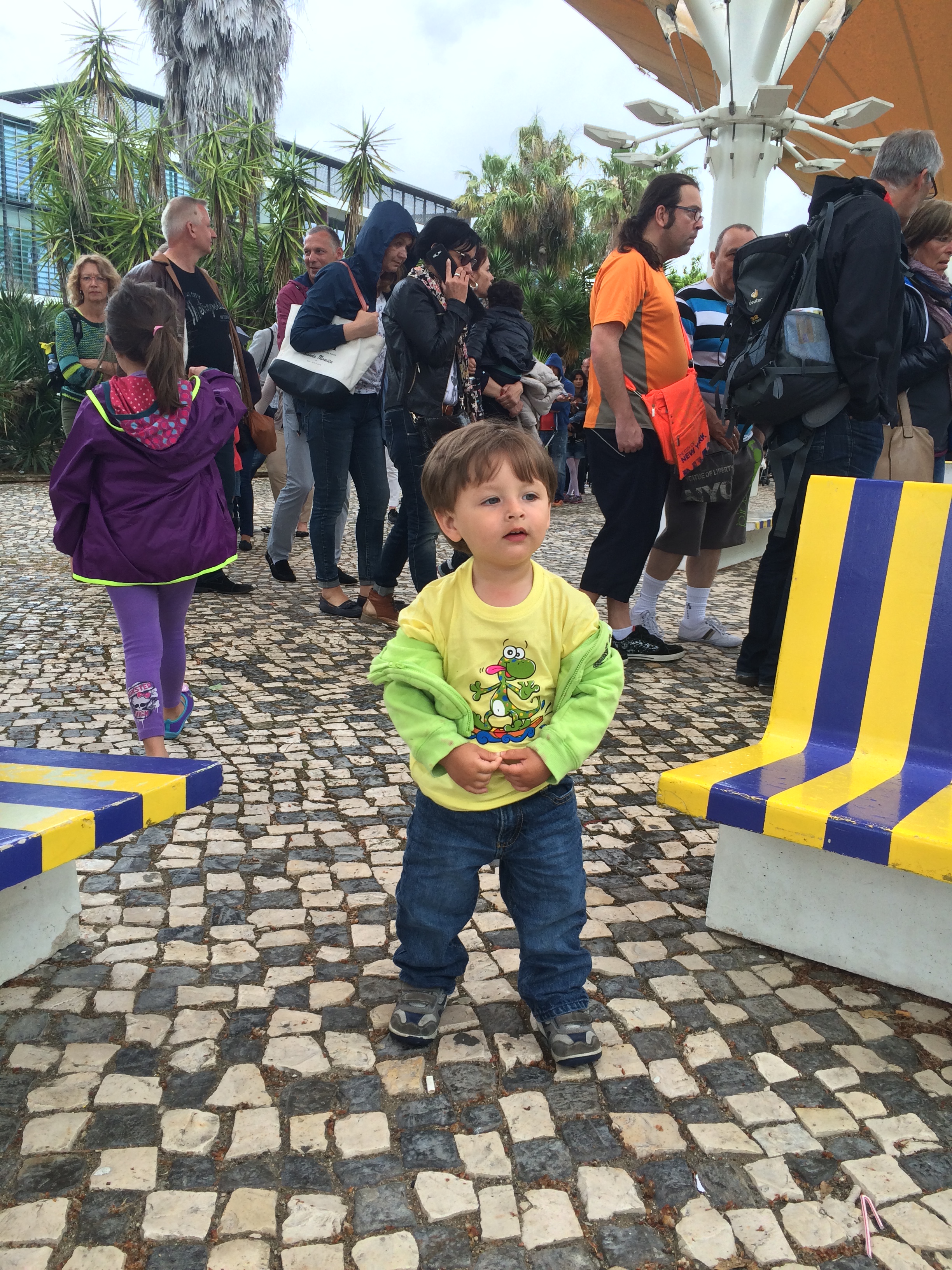 Rafi running around while we were waiting in line