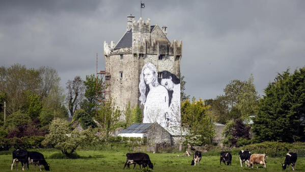 Finally, I’ll post these pictures of two amazing murals that have gone up in the past few months, painted by an artist named Joe Caslin. One is on a busy Dublin street, but the other is on a rural castle in Galway, which I think is just a beautiful juxtaposition of a classic Irish countryside scene with a message of progress and change.