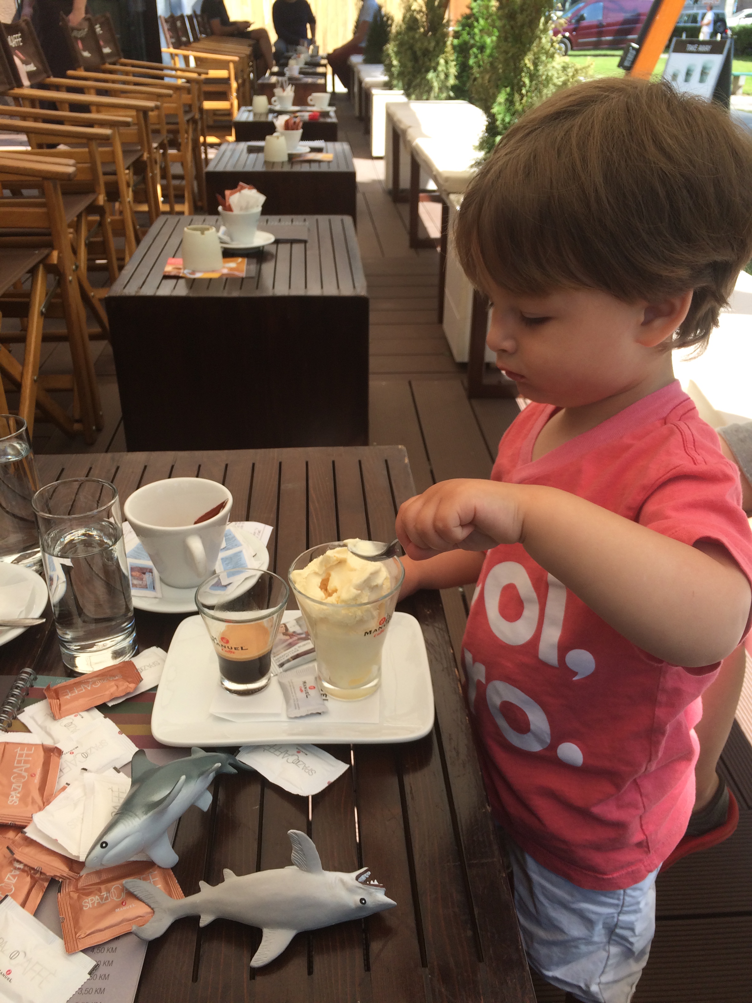 may june 2015 281 ← Previous Next → Enjoying delicious coffee at a Sarajevo cafe called Spazzio. Rafi sampled the ice cream of my affogato (coffee with ice cream) drink