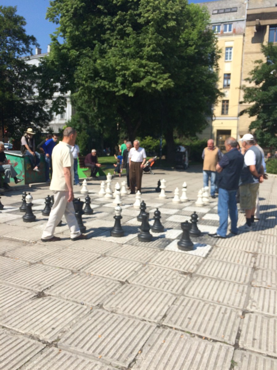 Old men play chess in Liberation Square