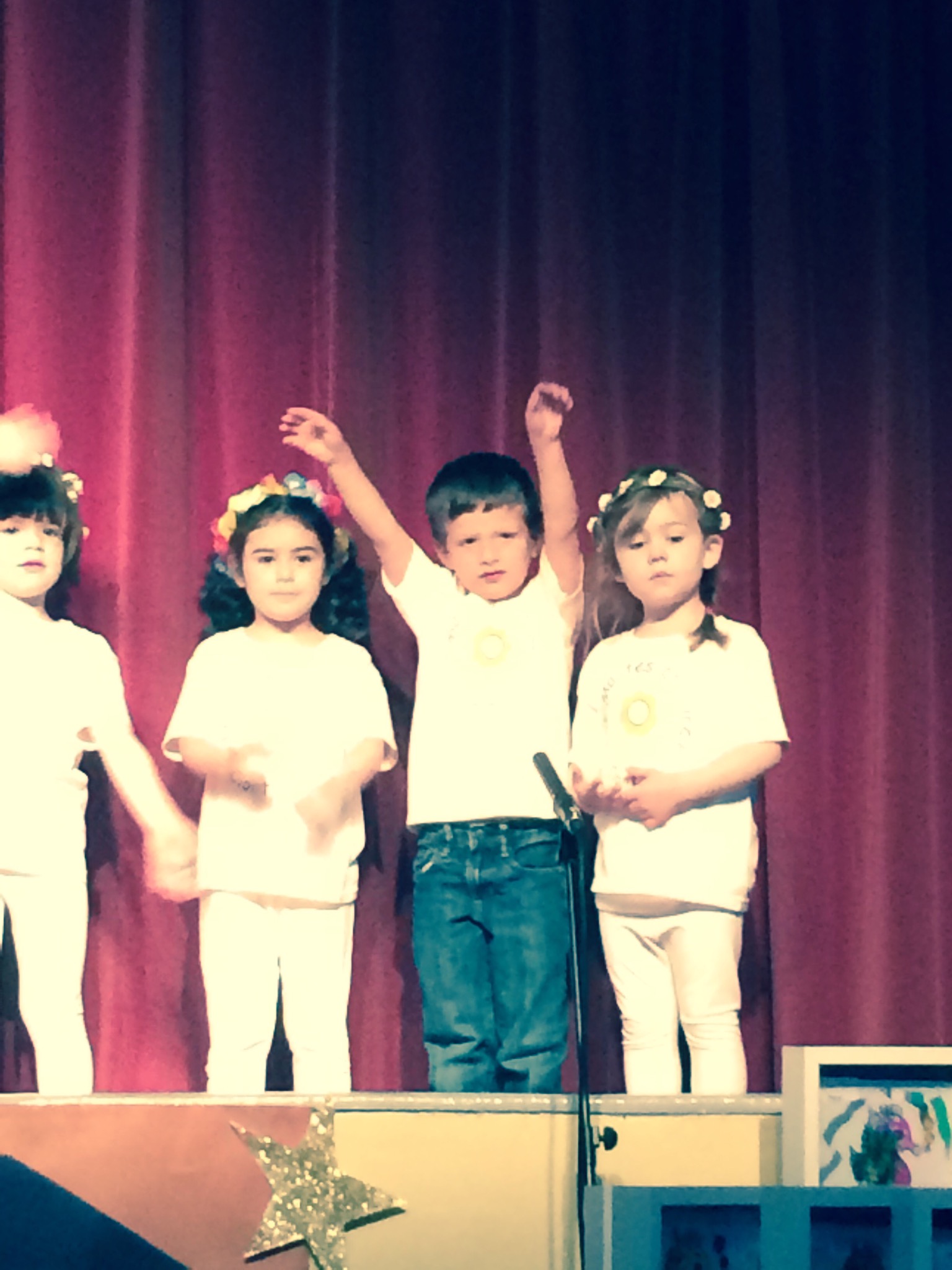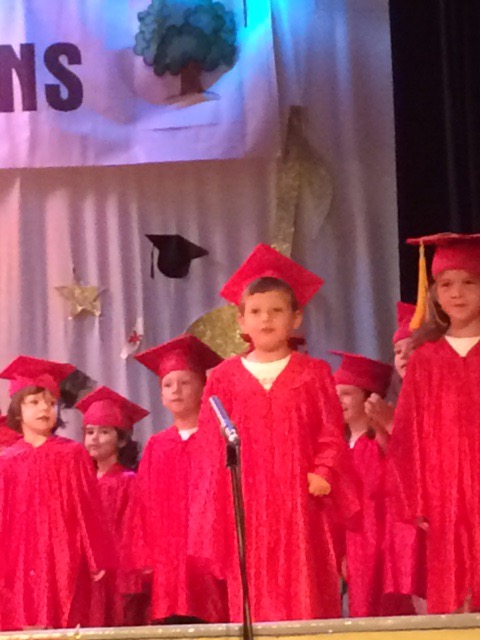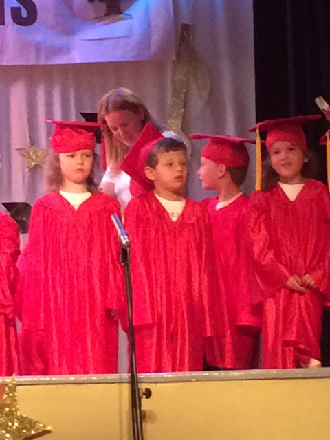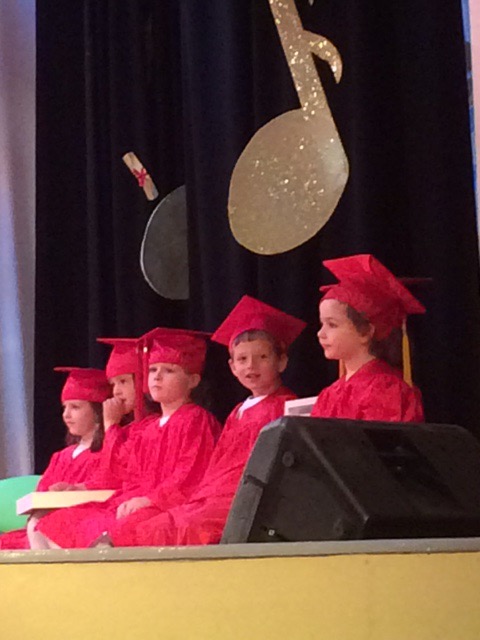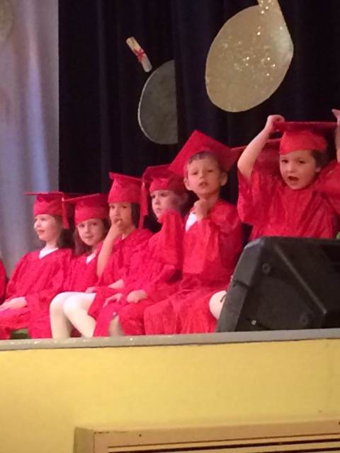 The performance culminated in the “graduates” donning mini caps and gowns (cuteness galore!) and coming up to receive their “diploma” which was a framed art project they had each made.