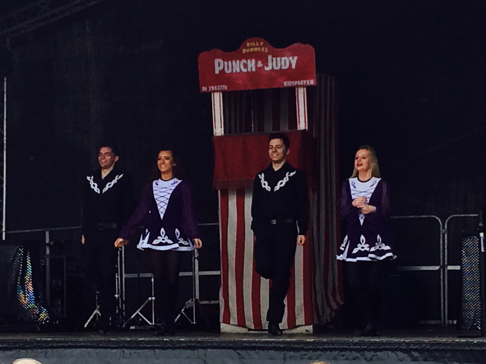 Best of all, though, was a stage dedicated to performances for kids. There was a juggler, a magician/puppet show man, and an Irish dancing troupe. Isaac absolutely loved the magician/puppet guy and insisted we come back to watch his second show an hour after the first one! Check out his huge smiles!