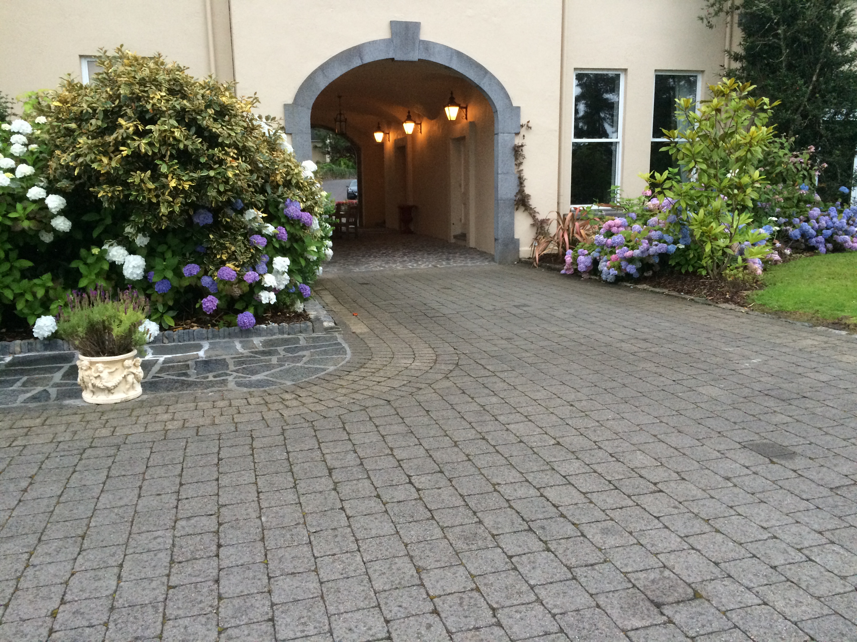 Beautiful exterior of the lodge with hydrangeas in bloom