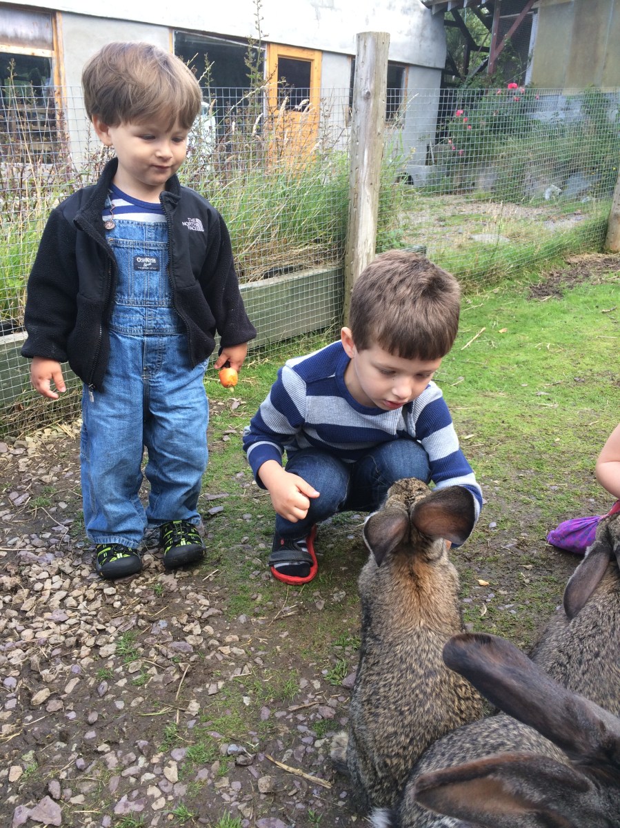 Rafi feeds bunny while Rafi looks on