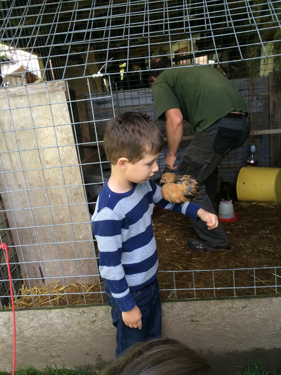 Holding a small chicken