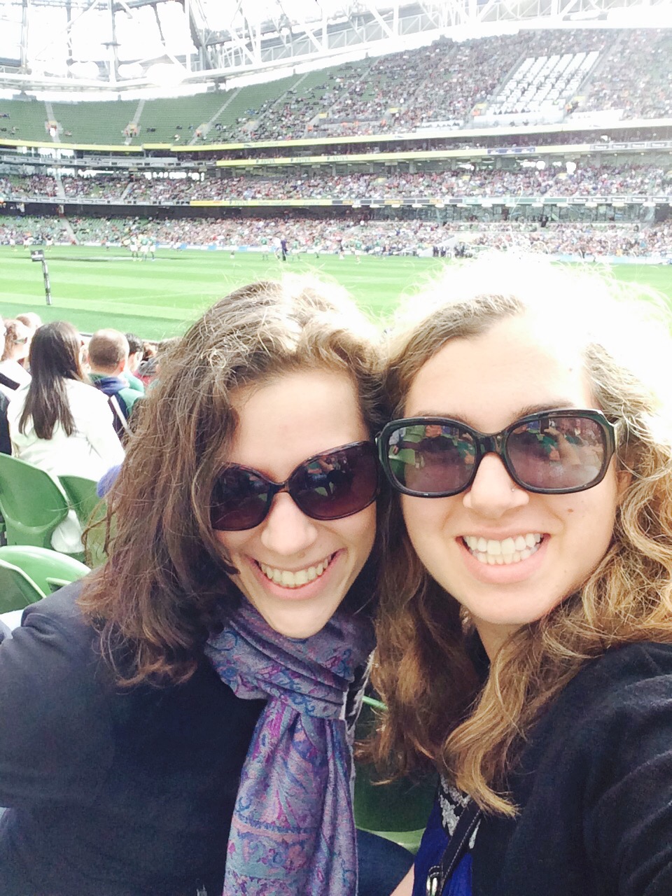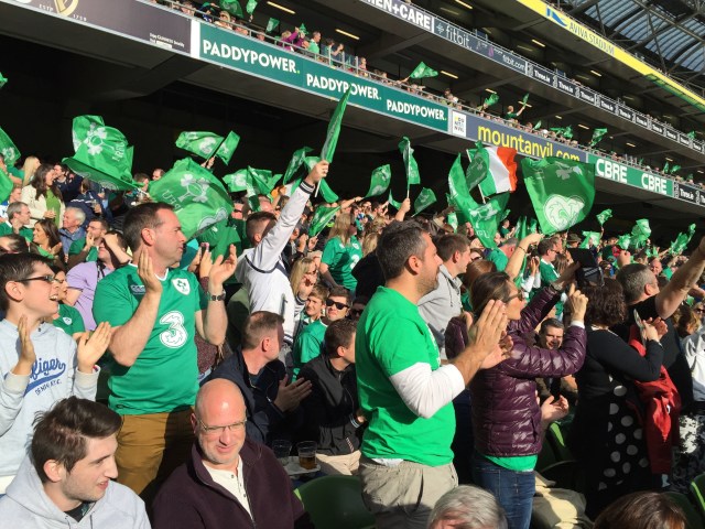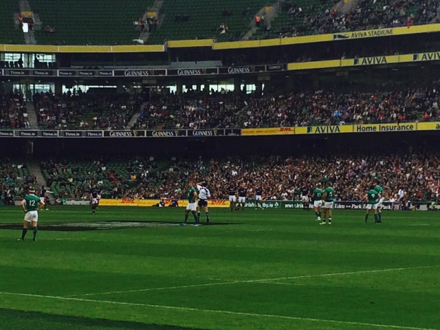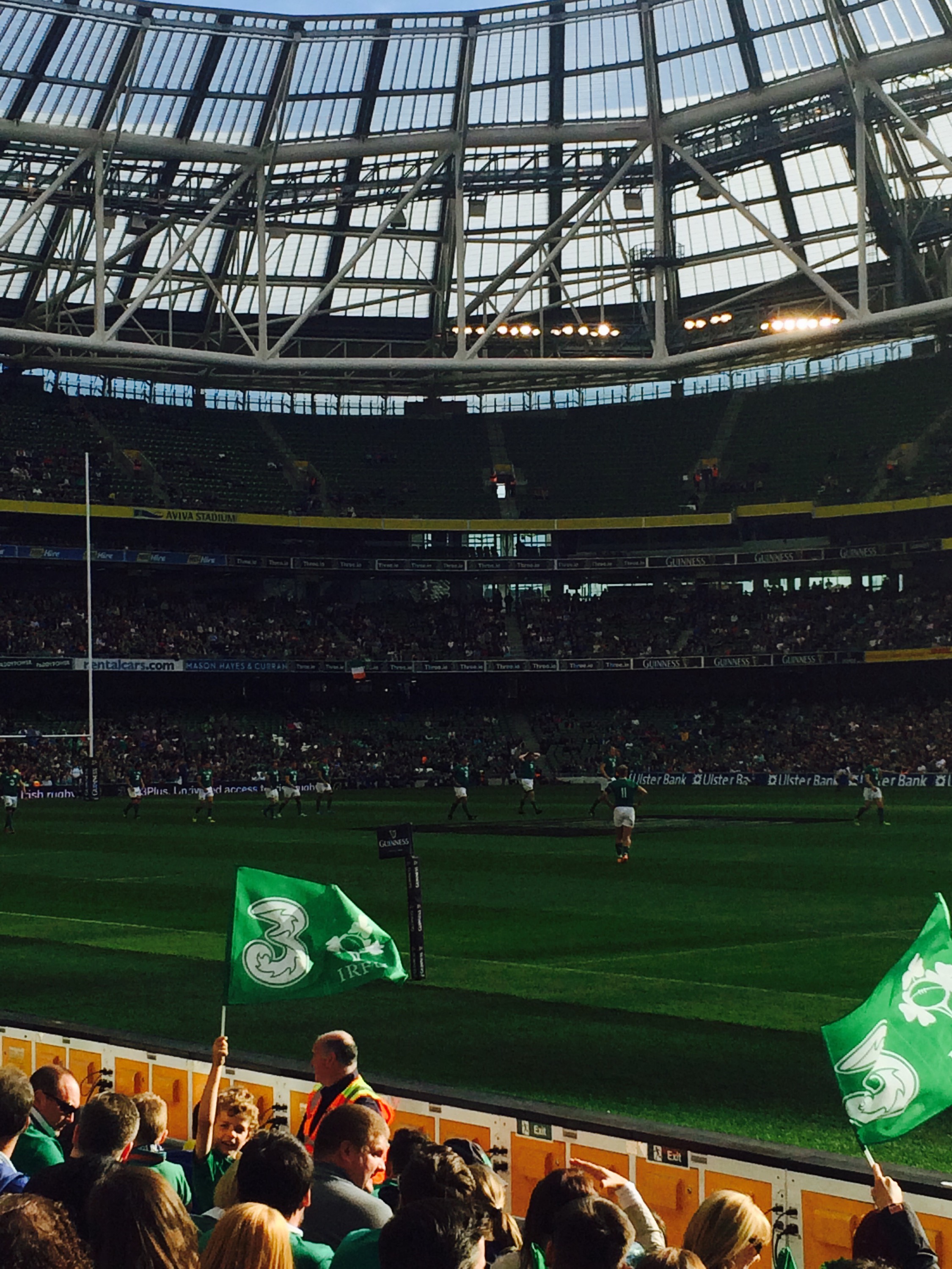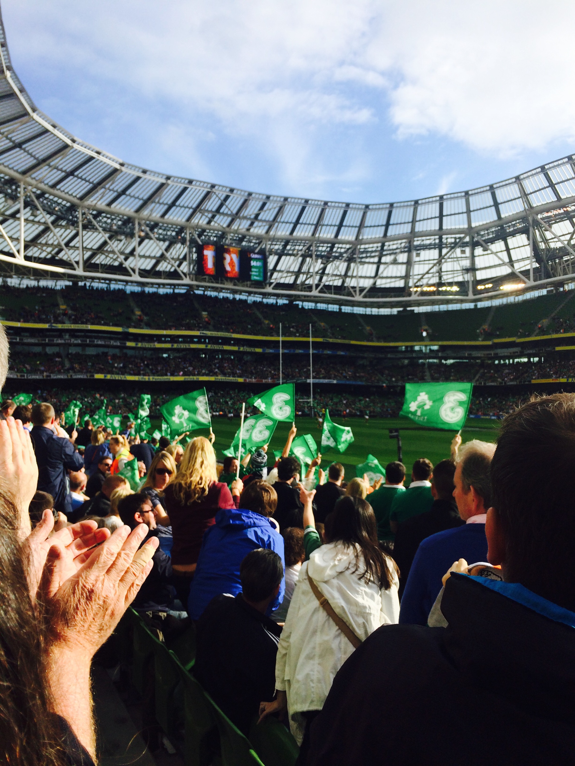 At a rugby game in Aviva Stadium. Exciting match between Ireland and Scotland (Ireland won!)