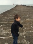 Poolbeg lighthouse is a bright red lighthouse in Dublin Bay that guides boats into the Port of Dublin. It’s such a distinct part of the Dublin Bay skyline. We had heard it’s possible to “hike” out to the lighthouse (it’s really just a long walk along a wide wall) so one Sunday this summer we gave it a try. The wall is a bit bumpy but was still doable with a sturdy stroller. Isaac walked the whole way out and then joined Rafi in the stroller for the walk back. It was a brisk day so the sea air felt good, and it was great to get a different view of Dublin and to see the ships coming into harbor so close up.