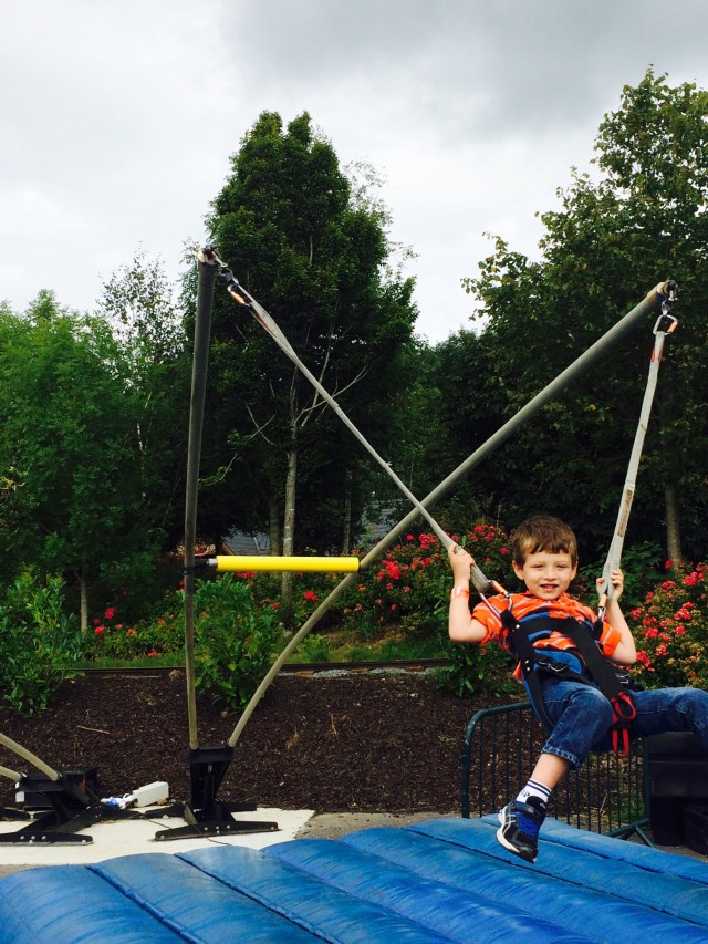 Fort Lucan is a great outing for kids, with a ton of different activities to try out. There are ropes, slides, bridges, ziplines, trampolines, and go carts to pedal. For bigger kids there’s even a mini golf course and some huge water slides (but we skipped both of these). For the wee ones, there’s a great area with smaller bridges, slides, swings, and sandpits to dig in. The challenge for me was that Isaac didn’t want to stay in the little kid area but Rafi was a bit small to climb around with Isaac (as much as he would have liked to!), so managing the two on my own was a bit tricky but we made it work. Both boys had a blast! If you go, I recommend taking a picnic as there’s a pretty limited selection of food (only like chicken nuggets and chips that kind of thing).