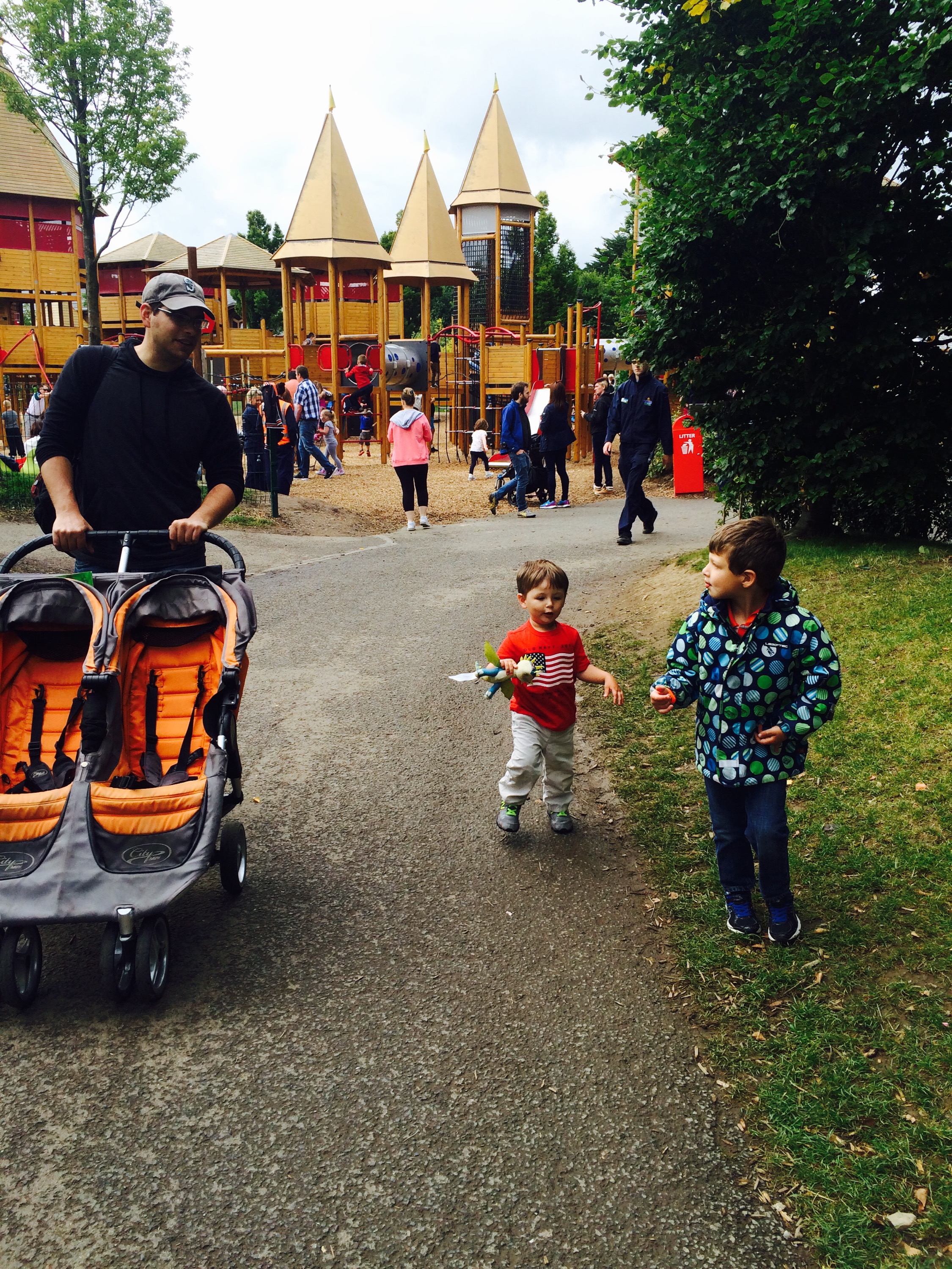 Only in Ireland would you find an amusement park with the theme of “potato” 🙂 Tayto Park is a huge amusement park next to the Tayto crisps factory (you can also tour the factory, but we skipped that part), and we knew we couldn’t miss the opportunity to check it out while living in Dublin. It’s definitely a two-adult type of outing so I was really glad we saved it for a weekend so Jeff could join us. Isaac was tall enough for a number of the rides (when accompanied by a grownup) and he had a blast! I was pretty shocked he wanted to do a ropes course type thing where you walk across bridges and ropes high above ground (with a safety harness)…Jeff got to accompany him for that while I watched from the safety of the ground. He’s definitely become a lot braver over the past year with trying things. Rafi got to do a few gentler rides and there were also several playgrounds throughout the park. There are even some zoo animals there, some water slides for when the weather is warm, and also Europe’s largest wooden roller coaster (which we didn’t do). All in all, a fun and exhausting day out!