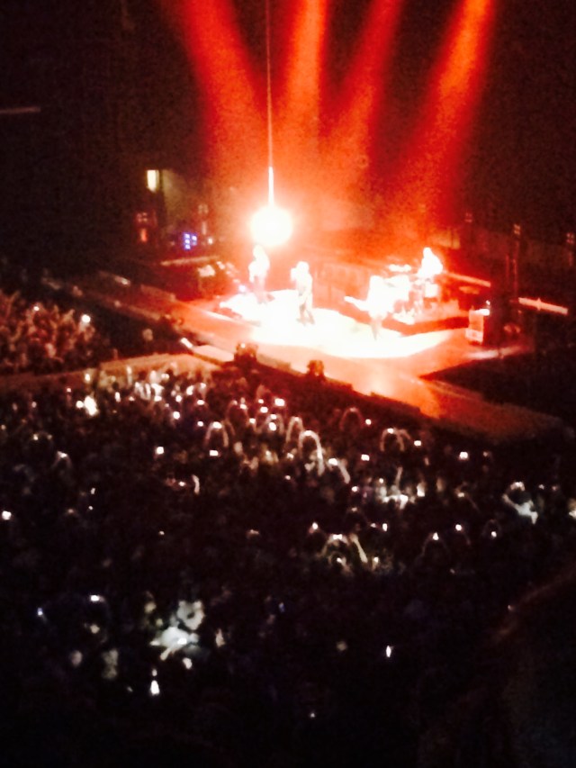 U2 always incorporates a lot of geopolitical content in their shows. This time was no different. With the topics of terrorism and refugees filling the news across the world, the music was accompanied by photo/video imagery of the war in Syria, refugees fleeing their countries, and the #refugeeswelcome hashtag. I read some critics that say U2 capitalizes on these worldwide tragedies for “entertainment” purposes, but I saw it more as solidarity, awareness-raising, and honoring people who suffer around the world. At the end of the show, U2 sang part of its famous song “Beautiful Day” in French to honor the Paris victims. At a time with so much tragedy and hate in the world, I felt that the audience at the concert was so full of energy, upbeat vitality, and hope. The way music can inspire and transport is pretty amazing.