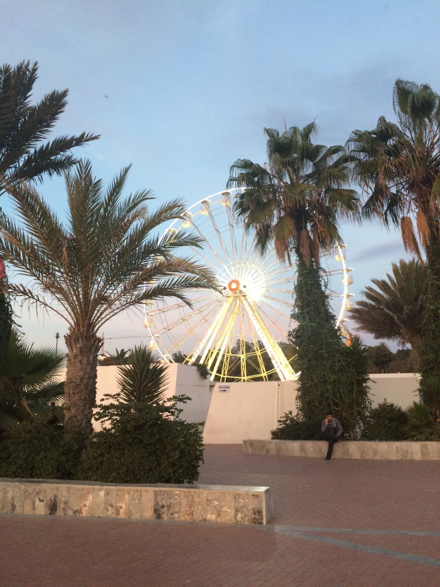 A ferris wheel (with Moroccan flag in the center)