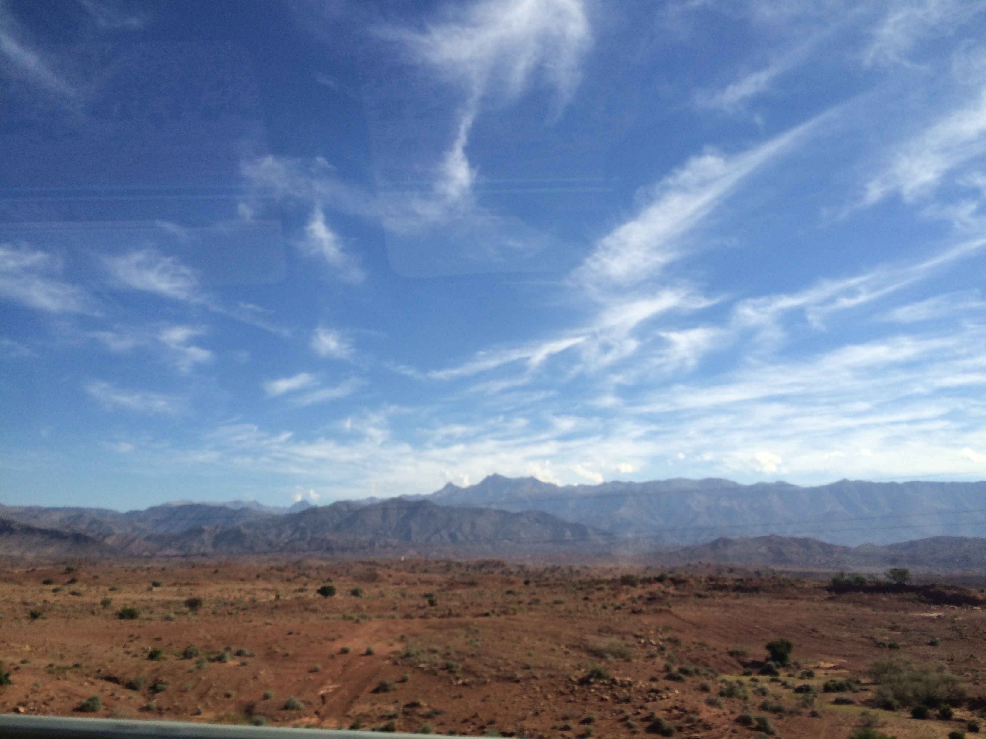 View of Atlas Mountains while driving to Marrakesh