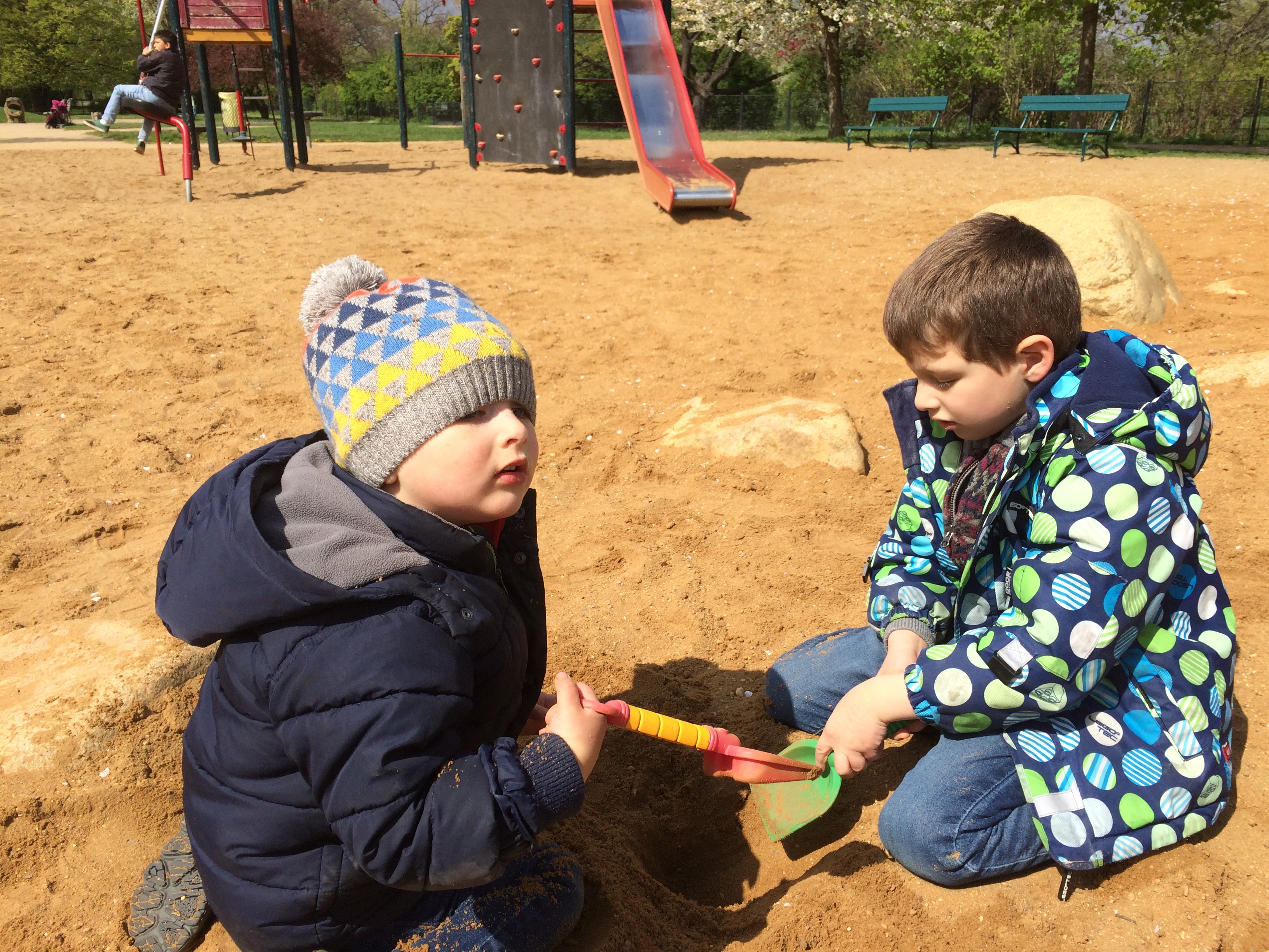 Digging in the sand in the park