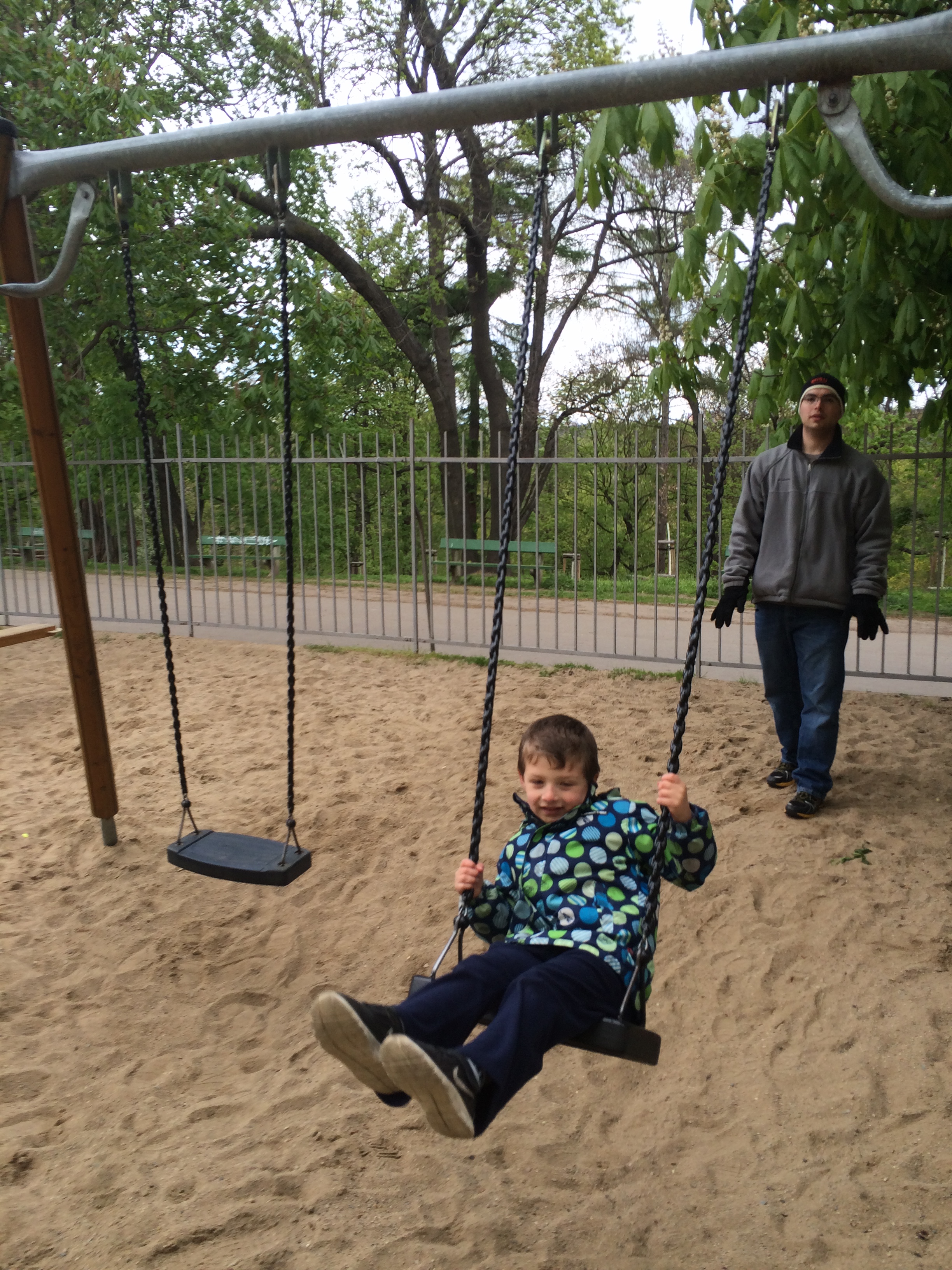 Swinging in the park near our apartment