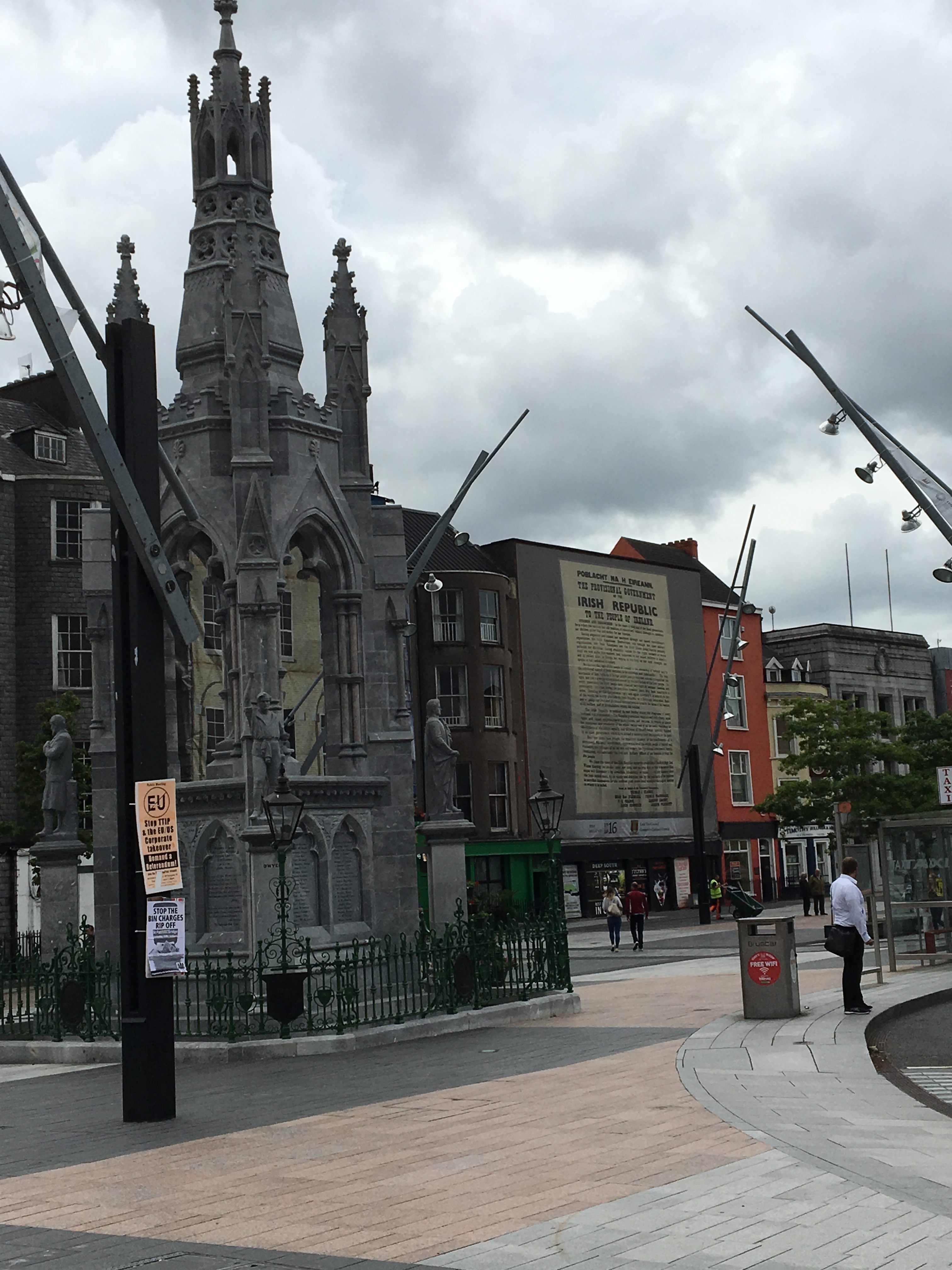 september-16-upload-6213 ← Previous Next → Statue commemorating Irish independence, as well as a large copy of the proclamation of independence on a building