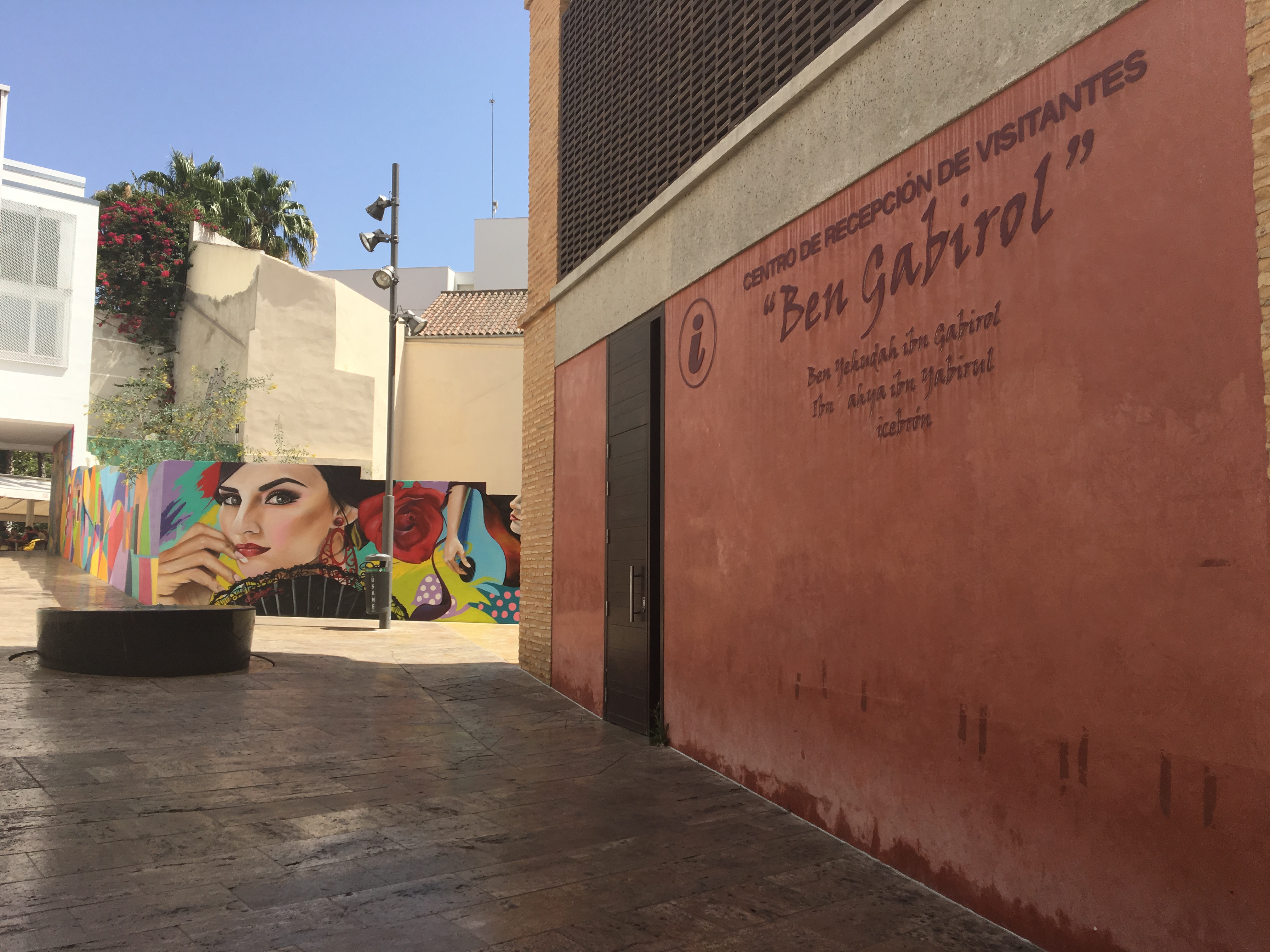 september-16-upload-6477 ← Previous Next → Visitor center and statue (nearby) honoring 11th century Jewish poet Ibn Gabirol, who was from Malaga