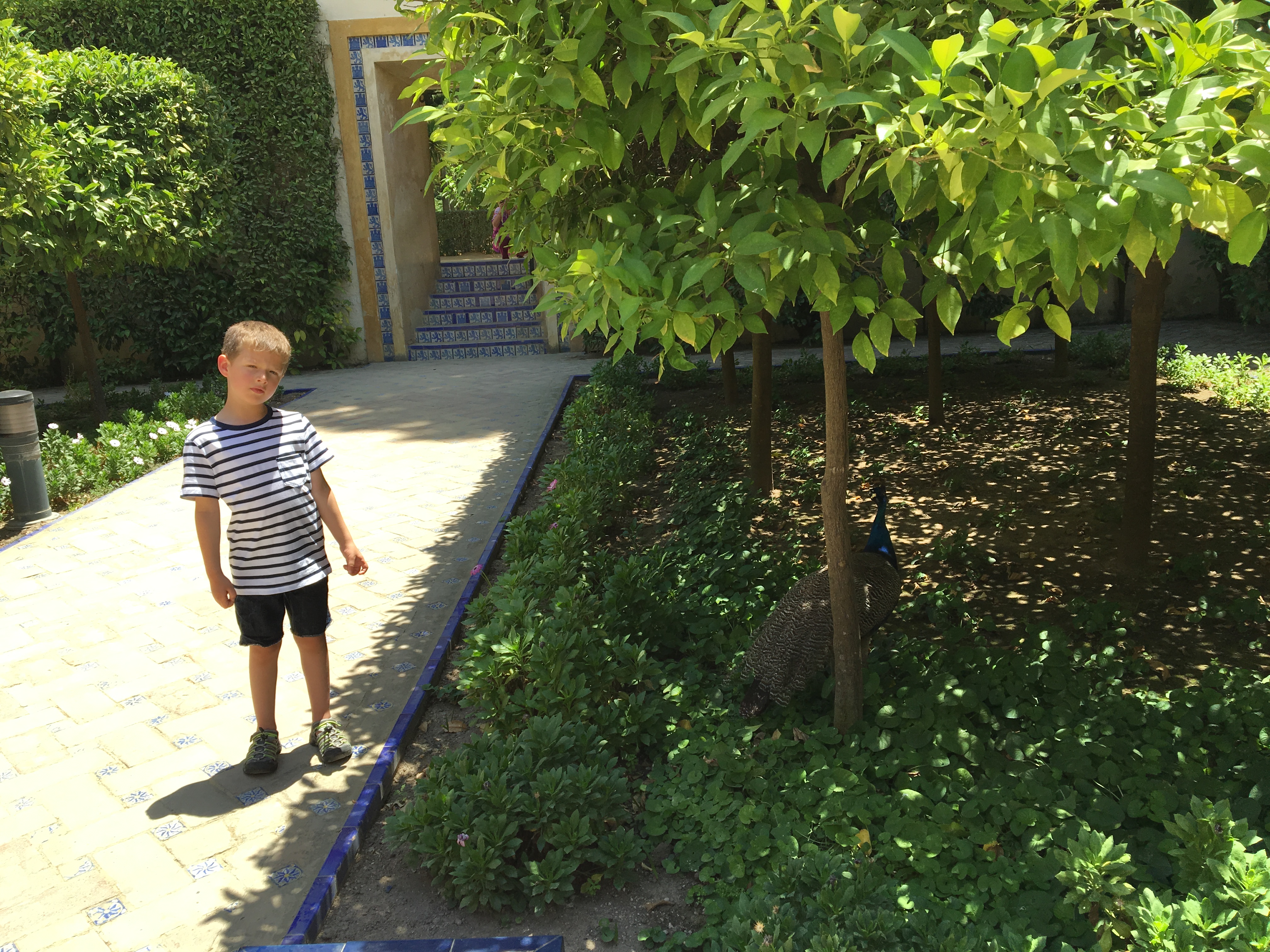 Isaac and a peacock